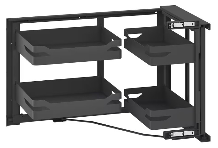 Sofistikovaný výsuvný mechanismus je vybaven tlumeným dovíráním, které zajišťuje tichý a plynulý chod při každodenním používání. Minimalistické antracitové provedení řady Style se skvěle hodí do moderních kuchyní, kde kromě funkčnosti hraje důležitou roli i design.